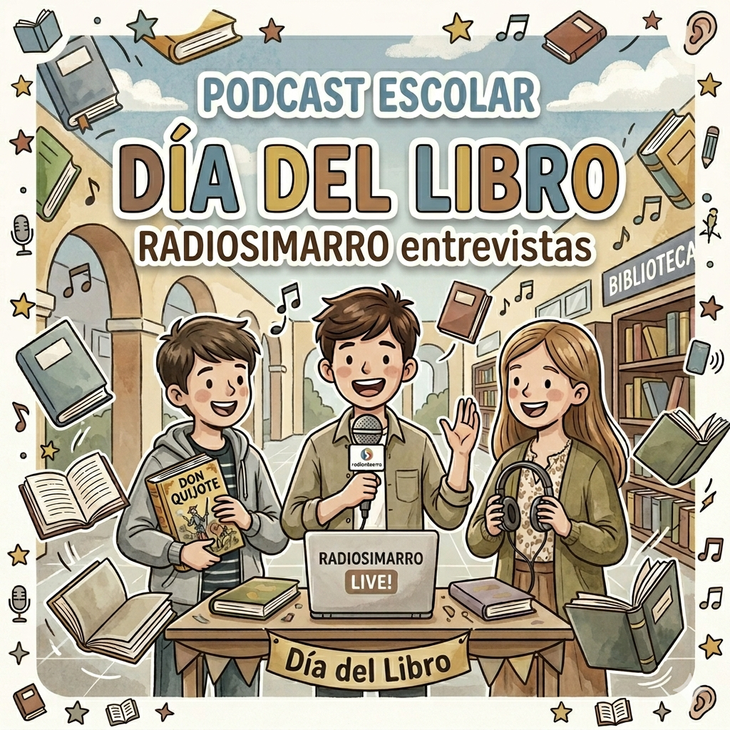 Celebramos el Día del Libro, entre muchas otras actividades, con el paso por Radiosimarro de nuestro alumno Juan de 6º B y nuestra compañera, la seño de inglés, Marina. Juan ha escrito un cuento para representar con marionetas con una temática muy interesante y Marina publicó un libro de poemas "Pandemiario" y ha escrito más de un centenar. Las entrevistas no tienen desperdicio, os animamos en este caso a escuchar pero no dejéis de leer porque "leer es viajar sin moverse del sitio".