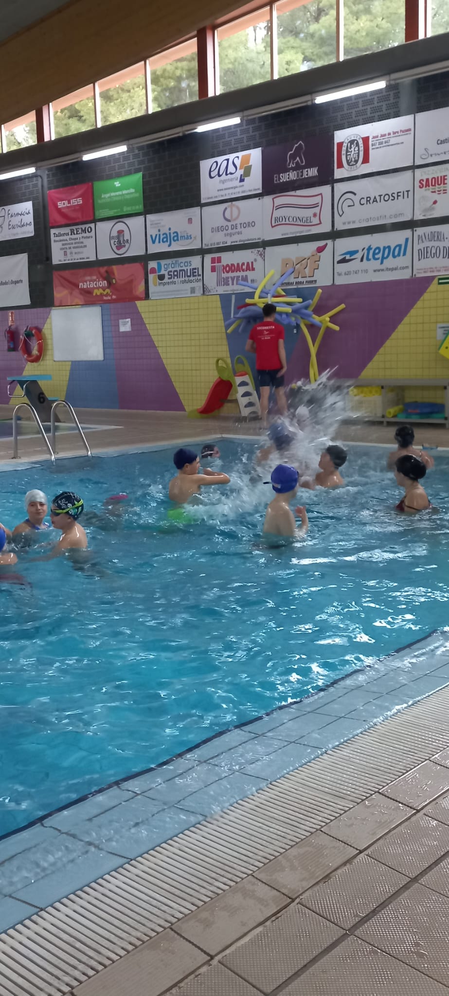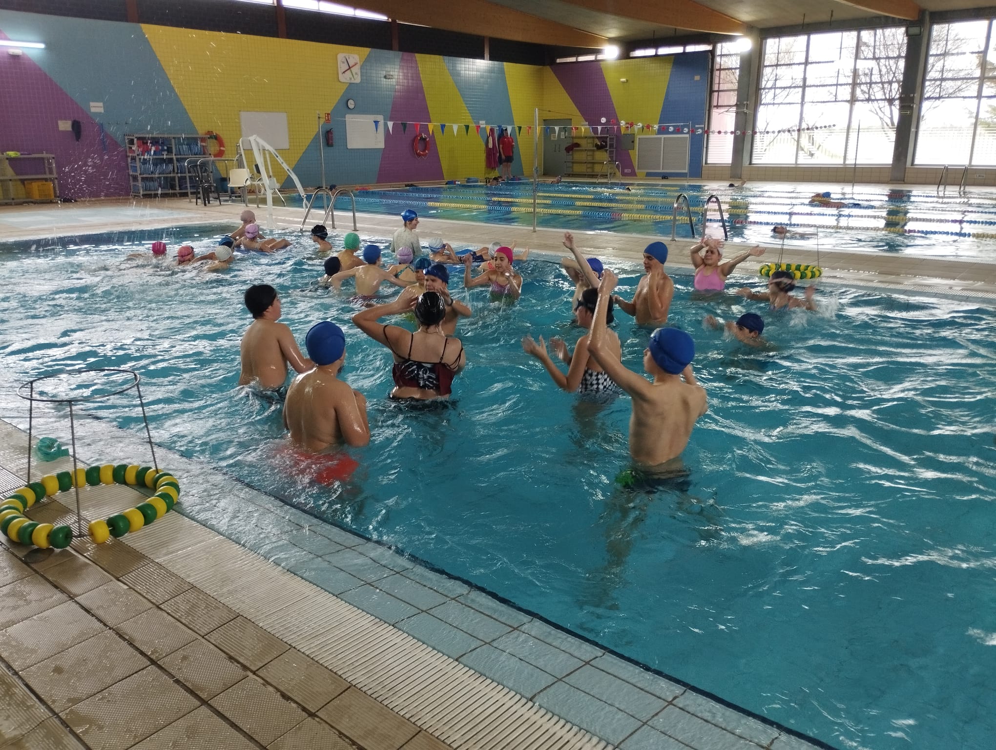 Hoy 17 de marzo los alumnos de quinto y sexto han ido a la piscina de la Roda para realizar natación con monitores y juegos acuáticos acompañados por sus maestros de Educación Física. Han disfrutado un montón en el agua .